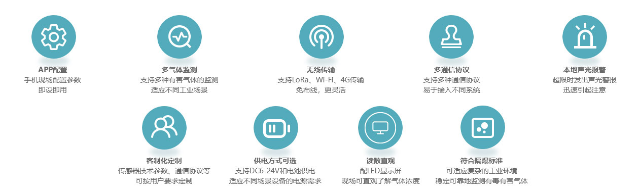 電子生產加工車間氟化氫(HF)監測;充電間酸霧、氫氣(H2)監測;氮氣儲罐區域氧氣(O2)監測;危化品存放區、倉庫、污水處理池等場所有毒有害氣體監測。