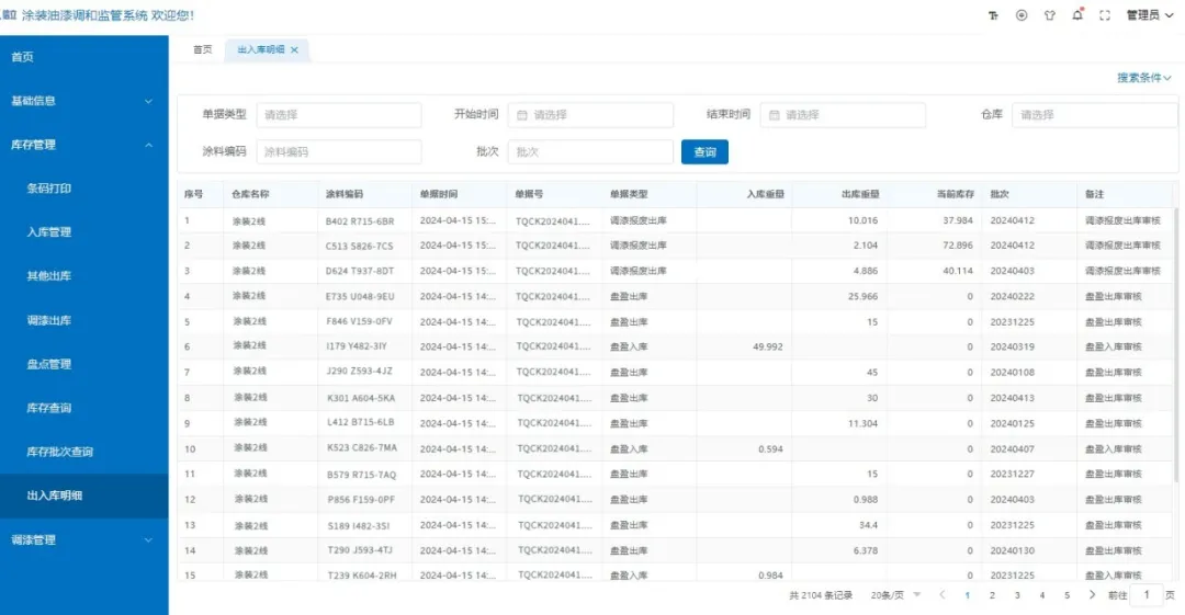 平臺(tái)自動(dòng)記錄、生成用戶所需的各類報(bào)表,如調(diào)漆成品統(tǒng)計(jì)、庫存余料盤點(diǎn)等報(bào)表;